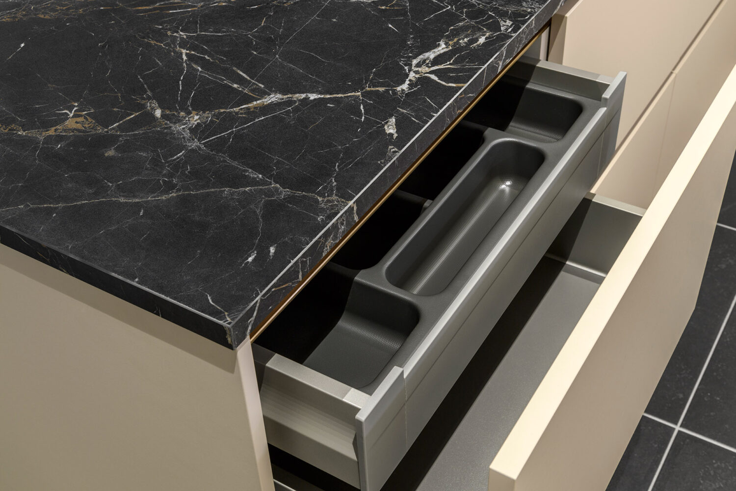 Lades zijn vaak praktischer dan traditionele kastjes met planken. Zeker diepe lades bieden veel opbergruimte en zorgen ervoor dat je overzicht houdt. Pannen, servies en voorraad kun je eenvoudig organiseren, zonder dat je achterin kasten hoeft te zoeken.